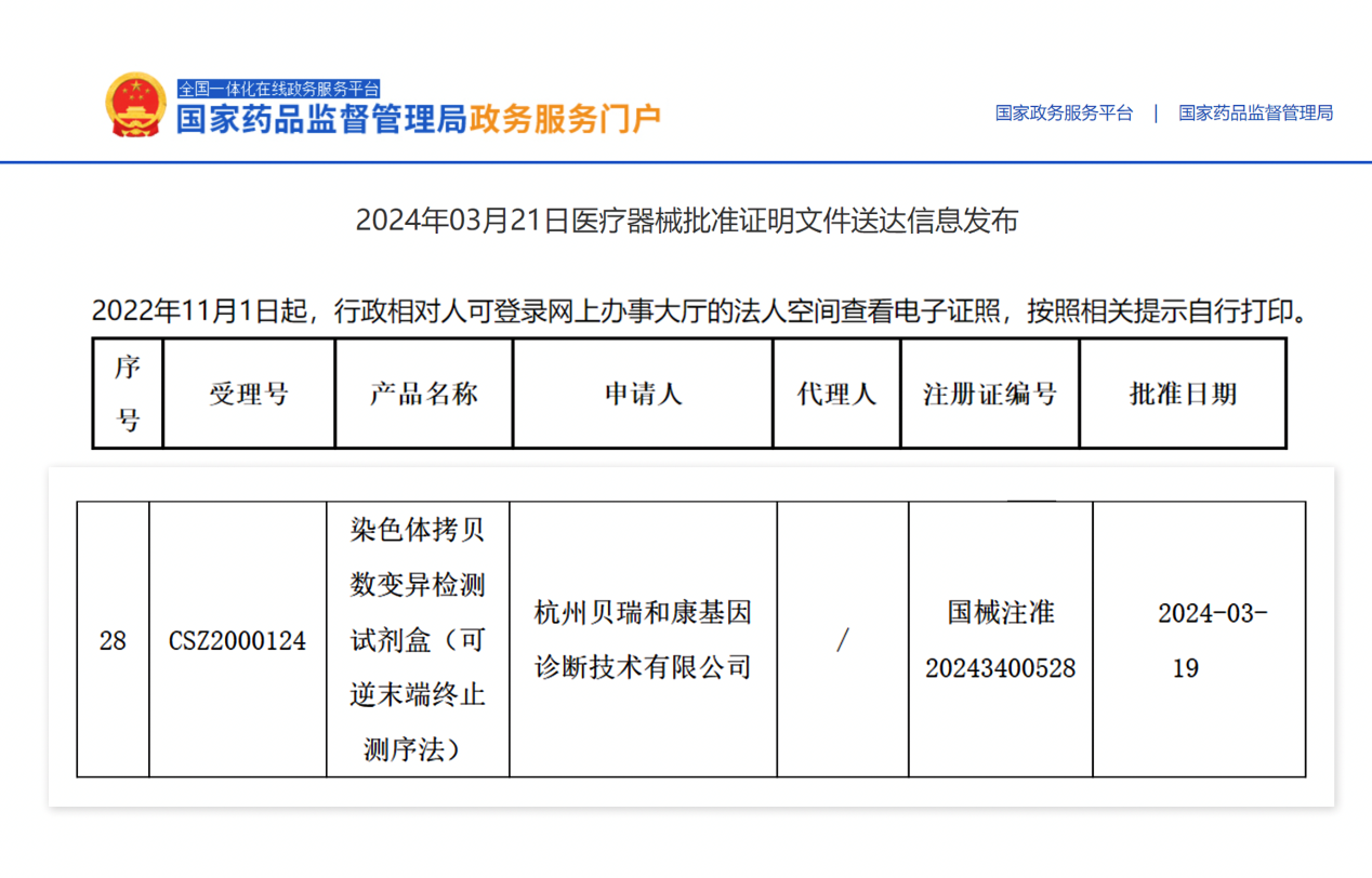 貝瑞基因CNV-seq檢測(cè)試劑盒獲國(guó)家藥品監(jiān)督管理局(NMPA)批準(zhǔn)上市!